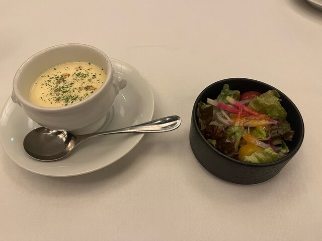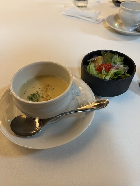 前回来た時に次はカレーを食べたいと決めていてお伺いしました。美味しいサラダとコーンスープとから始まり、カレーはローストビーフがのってます。大盛り無料でしたが、頼み忘れました