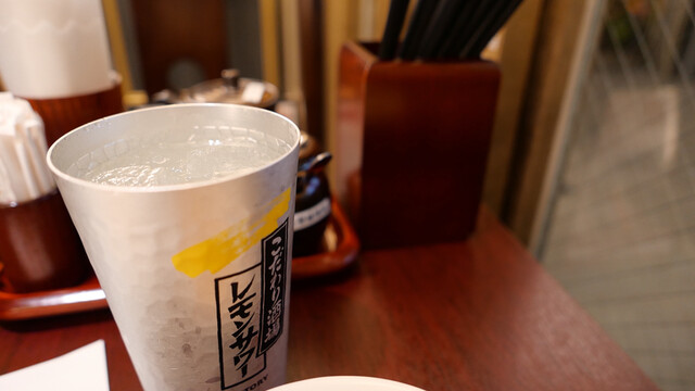 コップはアレだが、中身はオリジナルのレモンリキュールのソーダ割。