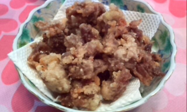 ニンニク醤油で鶏皮揚げ