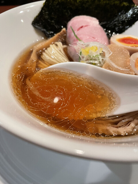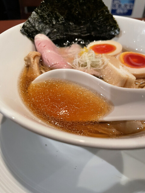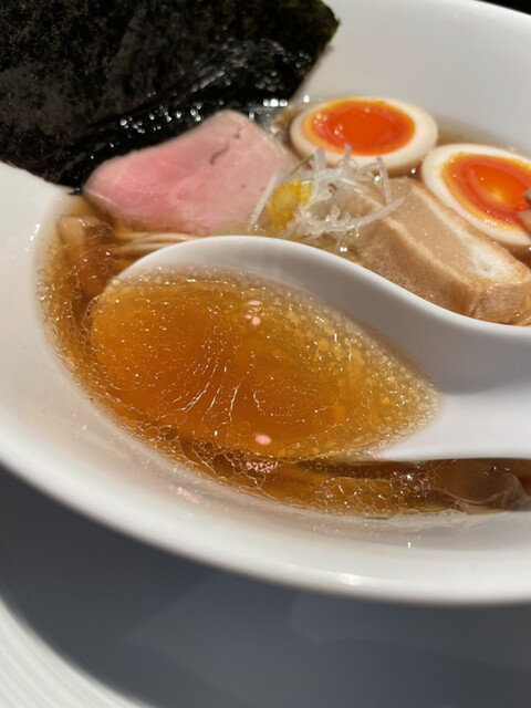 相変わらず美しい淡麗清湯スープは以前よりやや煮干し感抑えめな印象。先月末に登場した「濃醇」との違いを明確化した味付けになっているようですね。個人的には以前の強めの煮干し感も好きなのですが、こちらの方がより万人受けしそうな感じです。