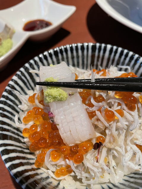 ご飯の上には釜揚げシラスとイクラ