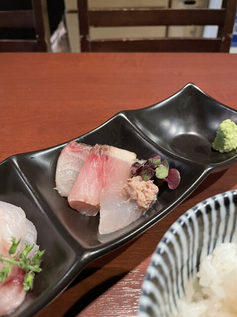 海鮮丼は、カンパチ、中トロ、ホウボウ、ヒラメ、シマアジ、クロムツ、イクラ、釜揚げシラス。さすがの鮮度と味わい。