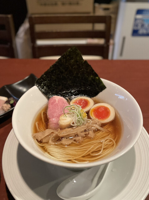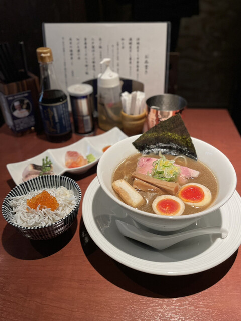 ・津軽煮干し中華蕎麦(味玉入り)¥900 ・【限定】大間のまぐろ¥800