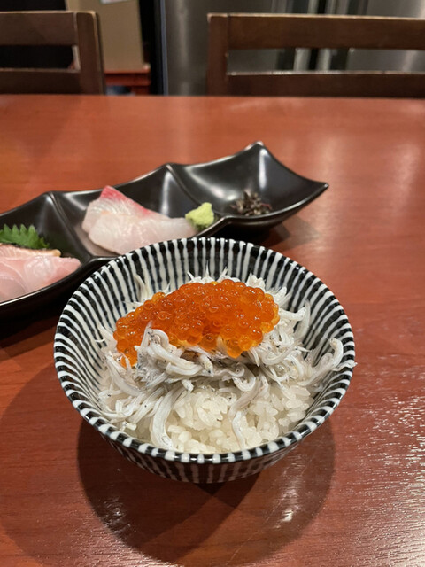 おっと、海鮮丼の方は、サワラ、ヒラマサ、タイ、スズキ、釜揚げしらす、イクラと豪華なラインナップ。間違いのない味です。