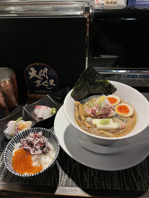 いただいたのは【限定】冷やしらぁ麺(真昆布水×陸奥湾産帆立出汁)¥1300と【限定】黒むつの棒寿司イクラ添え¥400