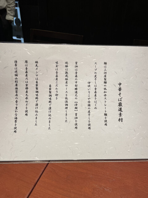 煮干しの旨味がとても濃く、芳醇。津軽醤油を使ったカエシの風味も豊かなので、毎回スープを完飲してしまいます。三河屋製麺の細麺もやや硬めの茹で加減でちょうど良い歯応え。スープとの相性も抜群です。