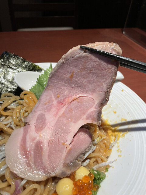 前回の冷やしは澄んだスープの超淡麗系でとても繊細な味でしたが、今回は打って変わって煮干し濃いめの濃厚系。強めの煮干し感ながらエグ味や苦味を抑えた芳醇で味わい深いスープは、昨年とは完全に別物。とても力強くてパンチのある仕上がりになっています。