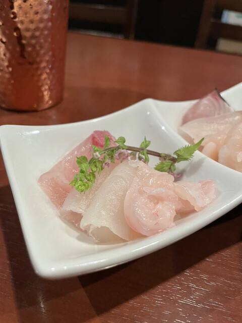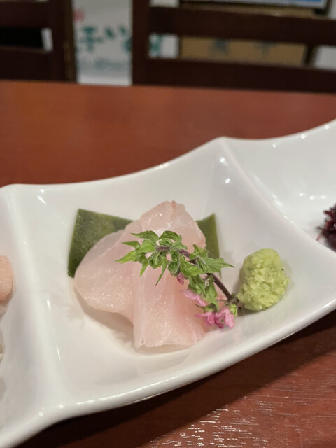 このご飯に乗った漬けの漬け具合が秀逸。先日、鯵とかかなと思ったので聞いてみたところ、ヒラマサ等の白身魚中心だそう。なんなら、これを丼で食べたいぐらい美味。