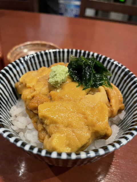 大間産生うに丼は、小さな丼ながら新鮮なうにがたっぷりの幸せな丼。ぱらっと雪塩をふりかけていただくと、濃厚な旨味が口いっぱいにひろがります。うにの下にはイクラか隠されていて、実はうにイクラ丼になってます。これ、大きな丼で食べたらもっと幸せだろうな、、、