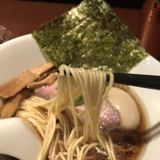 美しく澄んだ清湯スープは、ほんのり煮干しが香る醤油味。カエシは控えめでお出汁の味をしっかりと味わうことができます。