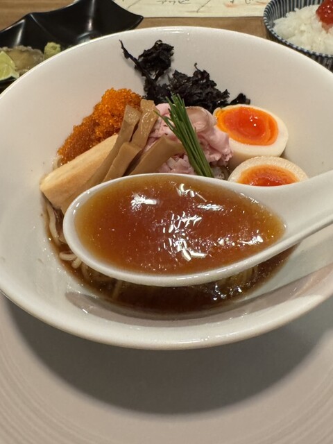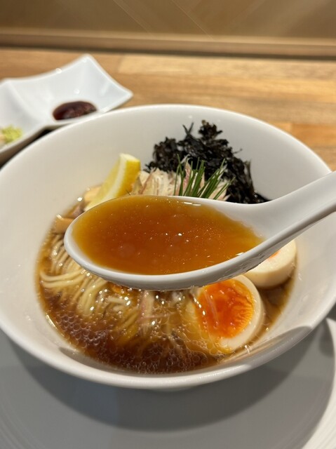 キリッと冷たい昆布水に煮干しの深い旨み、力強いカエシでパンチのある味わい