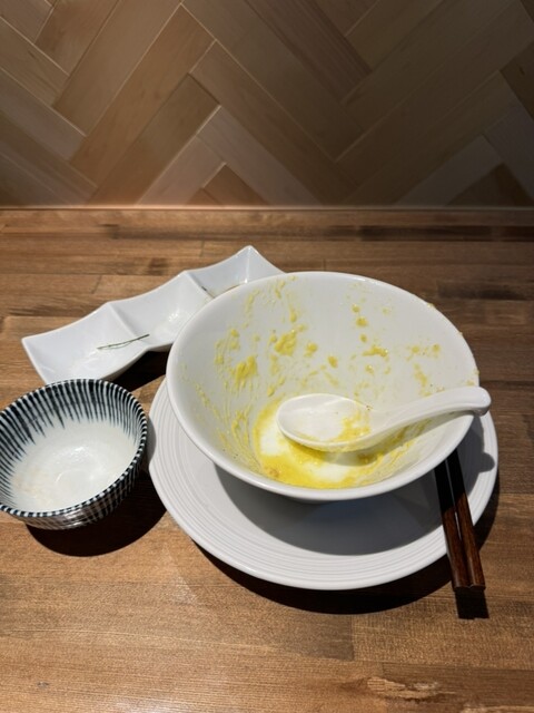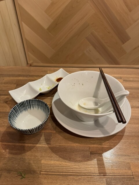 白醤油よりもすっきりした味わいながら背脂でコクをプラス。麺は以前の全粒粉入りとは異なる中細ストレート。麺の種類は変更の可能性ありとの事。お楽しみに‼️