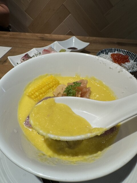 【限定】濃厚嶽きみ冷やしらぁ麺¥1500、海鮮丼¥500
