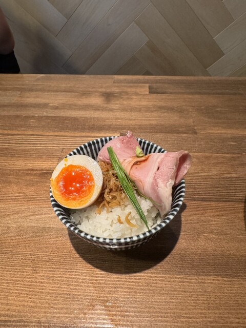 山椒塩煮干しはすっきりした塩のカエシに背脂でコクをプラス。麺は細めのちょいウェーブ麺となりツルモチ食感に。和牛たたき丼はキャビア、わさびと塩で頂く贅沢な丼❗️