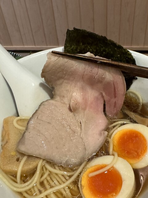 雑味のない平子煮干しの深い旨味が素晴らしい煮干し中華。ツルパツ細ストレート麺の食感も抜群でレアチャー、味玉も美味‼️