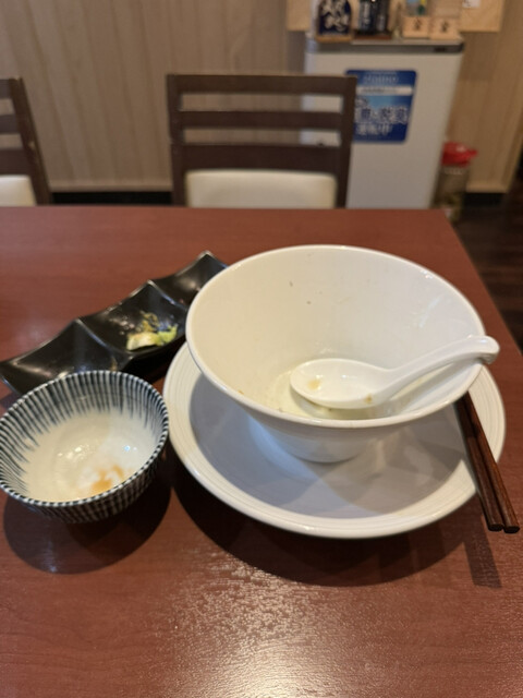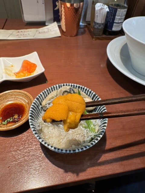 麺を食べ終えたら海鮮丼のご飯にスープをかけてセルフ牡蠣雑炊。コレも絶品‼️