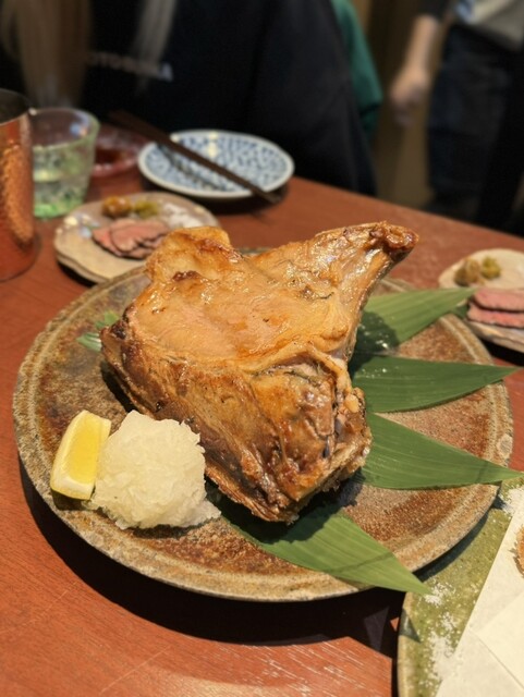 ともさんかくと大間の大トロのフライ、大間のまぐろのカマときて、〆には煮干し中華。どれも絶品