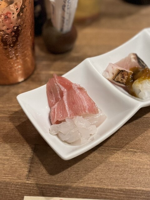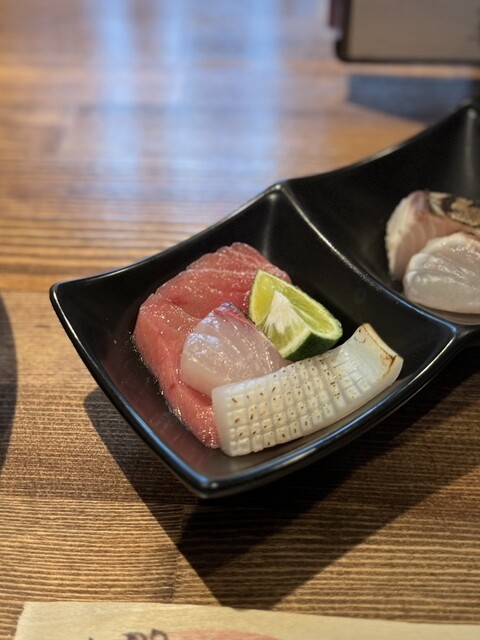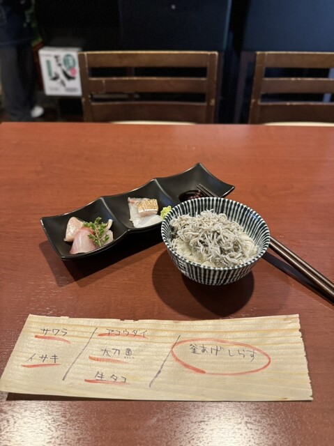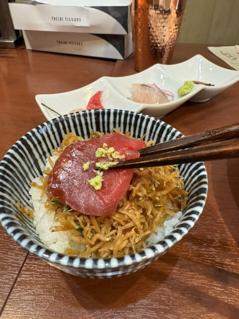 鯵のタタキとまぐろの漬けがメチャうまで白飯お代わりしたくなります。