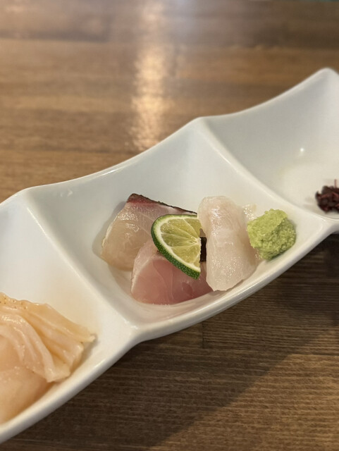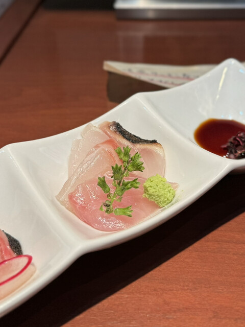 境港のサーモン炙り、サメガレイ、ヒラマサ