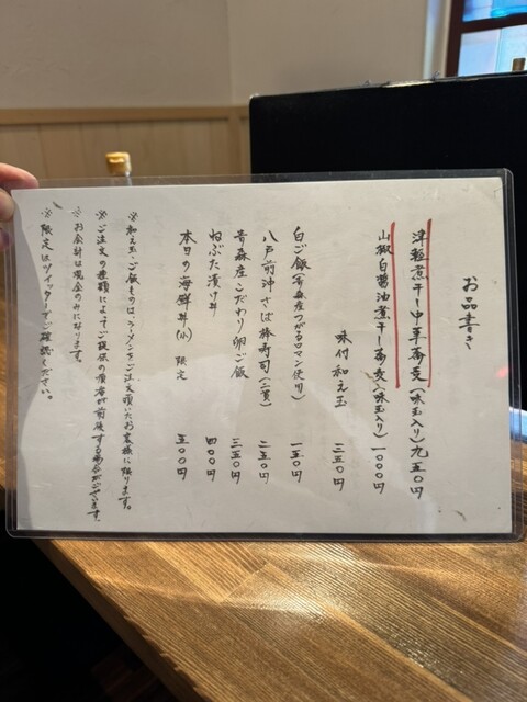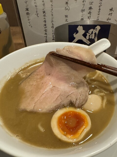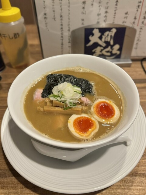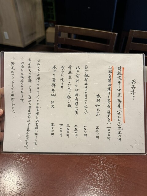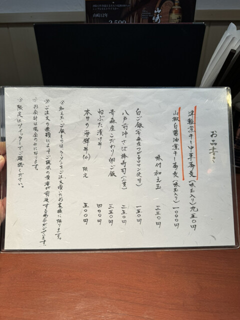 本日限定の「海老味噌らぁ麺」には間に合わず、海鮮丼も売切れ、、で、山椒白醤油