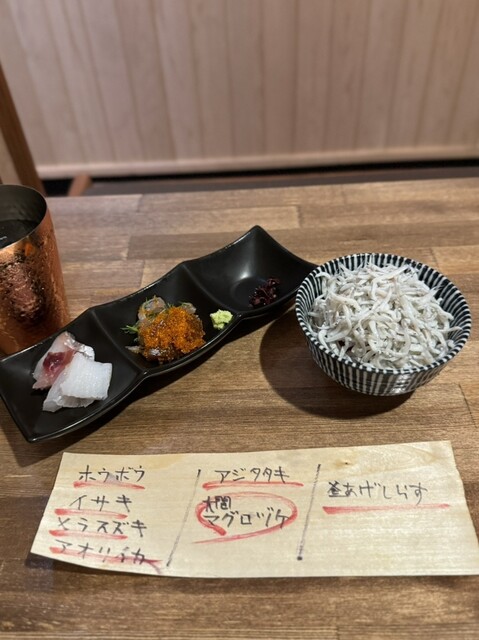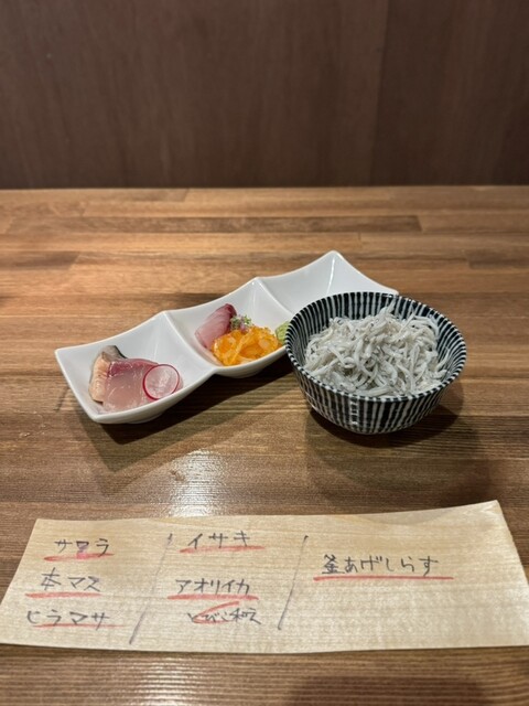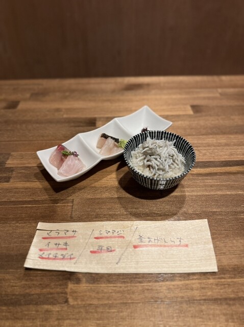 その他のネタは、サワラ、メダイ、ハチビキ、境港サーモン、ヒラスズキ、釜揚げしらすと盛りだくさん。