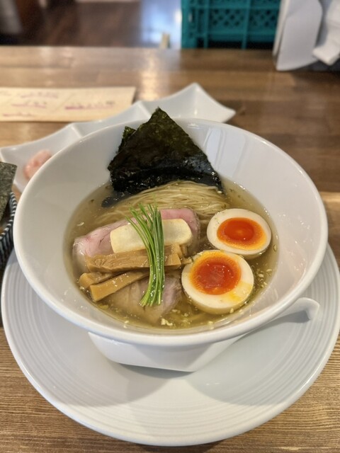 ふっくらした牡蠣がたっぷり乗った絶品塩そば。深い牡蠣の旨みとほんのり山椒の効いた塩スープに、しなやかな細ストレート麺が好相性な逸杯‼️