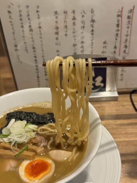 今日の煮干しはしっかりした旨味とほどよい苦味を津軽醤油のコクがまとめる逸品‼️