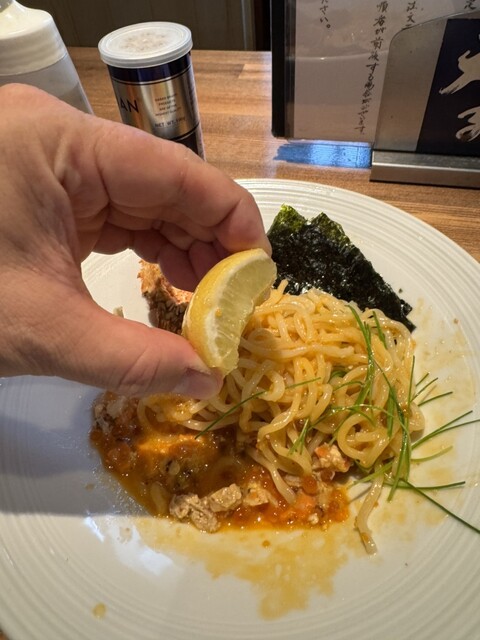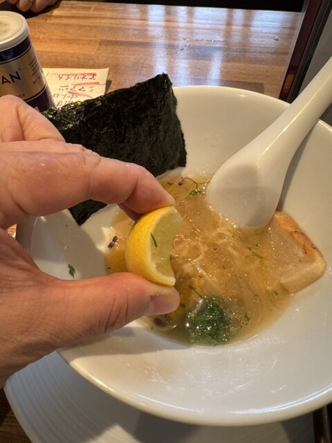 本日限定の「海老味噌らぁ麺」には間に合わず、海鮮丼も売切れ、、で、山椒白醤油❗️