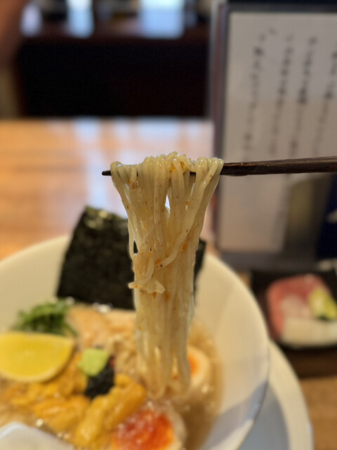 【限定】冷やし塩らぁ麺 がごめ昆布水×大間産生うに、鮑¥2000、海鮮丼¥500