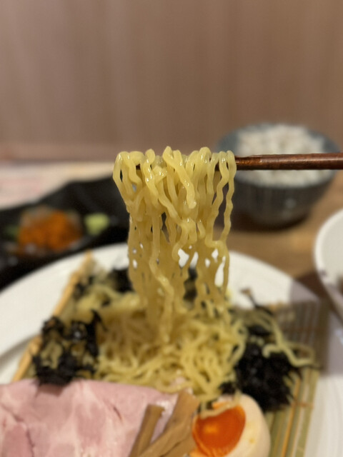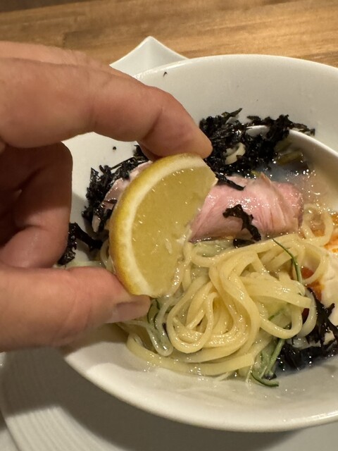 茗荷などの香味野菜に加え、岩海苔や芽ねぎトッピングも上品さを後押し。ツルパツ細ストレート麺の食感も抜群❗️2024版は、ブラッシュアップというよりリニューアルと言っても良いかも。