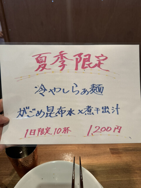 夏季限定、「がごめ昆布水と煮干しの冷やし」始まりました❗️(食べれなかったけど、、)
