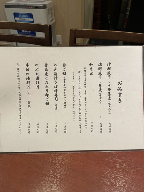 津軽煮干し中華蕎麦(味玉入り)¥900、海鮮丼¥500