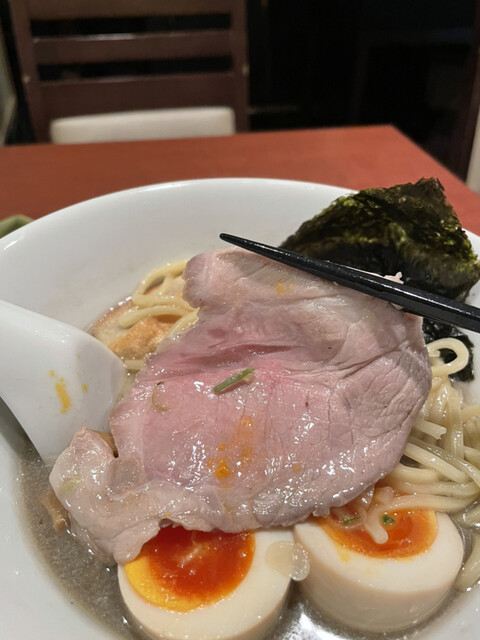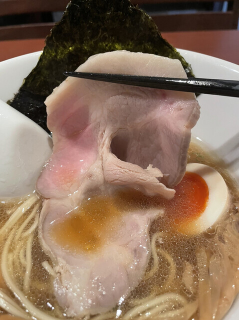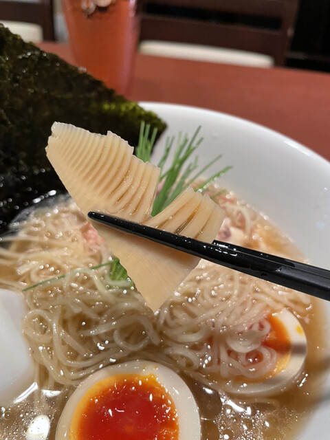 パツンとした歯応えの細ストレート麺との相性も良く、トッピングの低温調理チャーシューや穂先メンマ、味玉との味のバランスも良好。