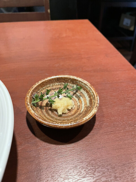 終盤、「味変用にどうぞ」と出されたおろし生姜と穂紫蘇を入れるとコクのある旨さが爽やかに変身。コレはも少し早めに入れても良かったかもw