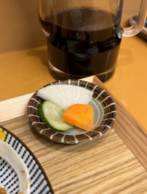 とん汁は、豚肉やタマネギ、こんにゃく、ごぼう、ニンジンなど具沢山な上、かぼちゃ、ナス、ピーマンの素揚げがトッピングされておりヘルシー。塩味控えめで麦味噌の甘みが強めなので、ここは好みが分かれるところかも。