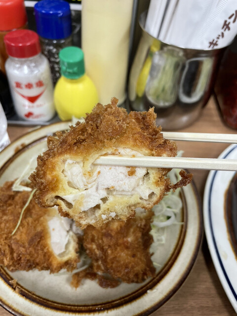 さっくり揚がったチキンカツからいただきます。