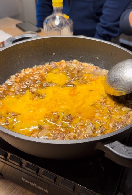 ホルモンをしゃぶしゃぶしたマッシュルーム出汁を使った玉子丼。もちろんマッシュルームもたっぷり入って旨みもぎゅっと凝縮されてます。