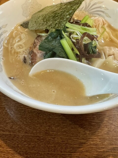 トッピングの海老雲呑、肉雲呑や大判のチャーシュー、とろっと煮豚も美味!ご飯との相性も抜群!シャキッと青菜、コリコリキクラゲは良い感じの食感のアクセント。これまた完成度の高い逸杯でした!!ごちそうさまでした