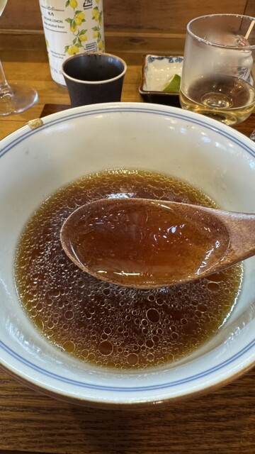 〆のスープ割りは本枯節のお出汁で鶏出汁と合わさるとまたまた旨みが深くなる逸品。この辺も計算し尽くされてる感じですね。さすがです。