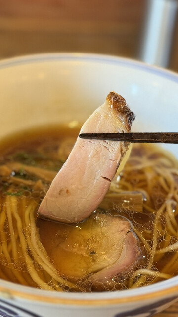 ふわっと醤油香る琥珀色の清湯スープに限りなくしなやかな細ストレート麺、しっとり肉々しい二種のチャーシューやコリッとメンマに九条ネギ、、これ、もはや料理というより芸術ですね❗️