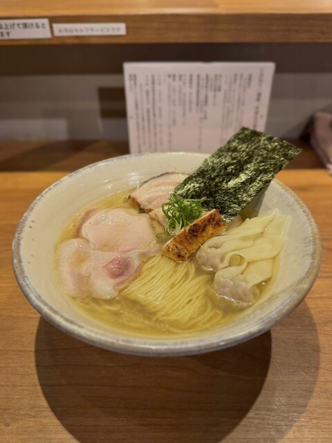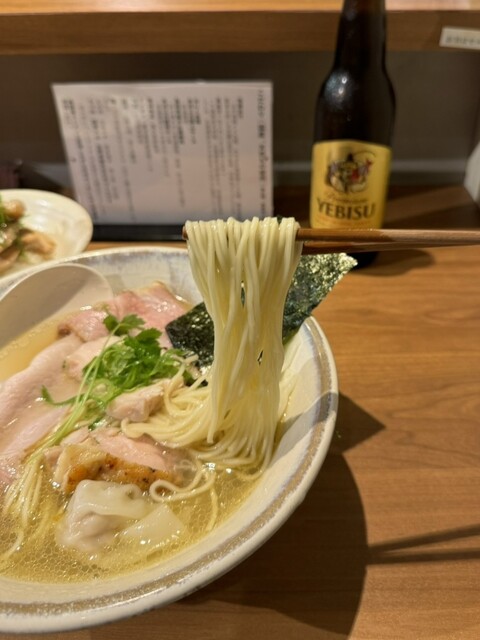 特上塩らぁめんは、着丼と同時に香る鶏の香り、しかし口に含むと広がるのは蛤や浅利などの貝の旨み。地鶏の旨味が厚みと深みを与える逸杯。