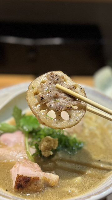 ふわっと香る醤油の香りと鶏の旨み❗️この日は食べ始めから貝の主張しっかり目の滋味深い味わい。シルキーでなめらかな麺の食感も素晴らしく、贅沢なトッピングはどれも絶品、めちゃうま❗️
