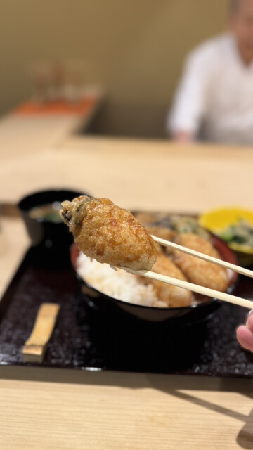 極薄の衣を纏って絶妙な加減で火が入っていて丼タレは控えめ。なので牡蠣そのものの味わいをダイレクトに感じられる逸品に仕上がってます。