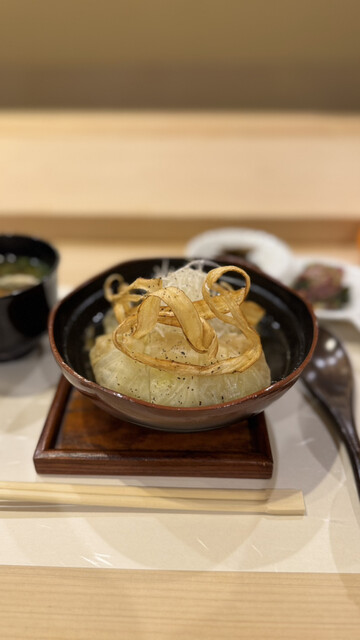 アーティスティックに飾られた揚げ牛蒡は、そのままサクッといっても良いですが、お出汁に浸すとより風味が強くなって美味しいですね❗️