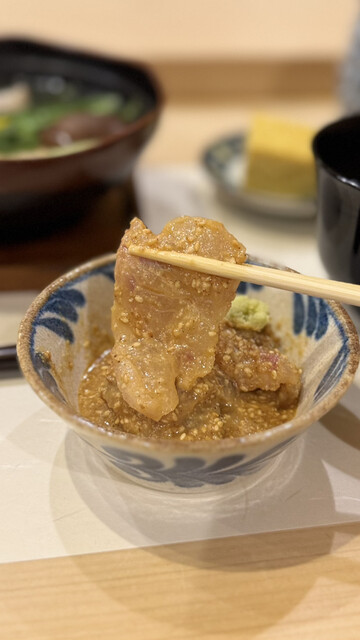 内幸町の紹介制のお鮨屋さんのランチタイム限定メニュー。本日は鶏のくわ焼き❗️