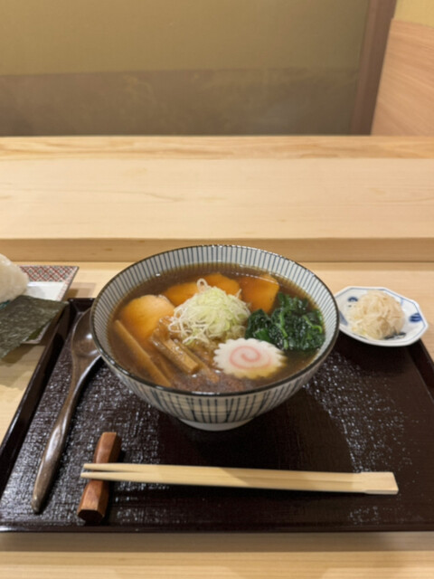 おむすびは、炊き立てご飯にセルフで海苔を巻いていただきます。シンプルに米そのものを味わえますが、スープと合わせるのもこれまた美味‼️