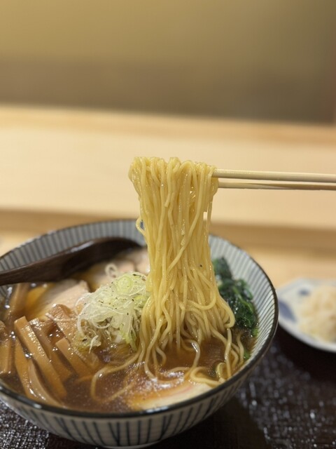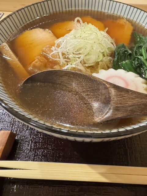 まろやかなカエシで仕上げた和出汁香る醤油スープは滋味深く優しい味わい❗️合わせる麺はしなやかな細ストレート麺、チャーシューはミシッと肉々しい赤身肉。ほどよい歯応えと肉の旨味を堪能出来ます❗️