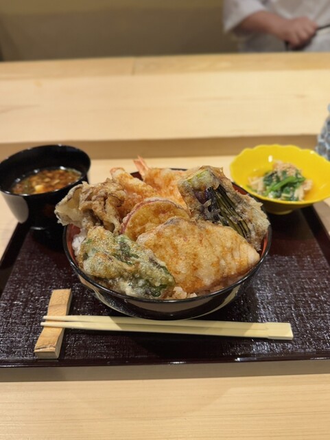 サクッと軽く揚がった天ぷらは薄衣ながらザクザク系ではなく滑らかな衣で口当たりも上品。丼タレは控えめながら素材の味を引き立てる絶妙な味わいです。