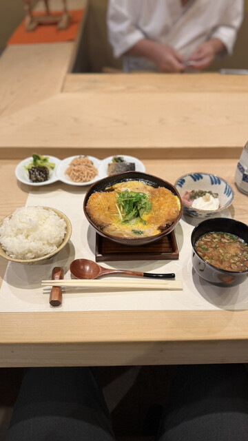 内幸町の紹介制のお鮨屋さんのランチタイム限定メニュー。本日は、「カツ煮膳」❗️