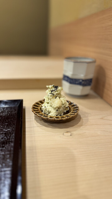 まずは、濃厚な胡麻だれを纏った鯛をツヤッツヤなご飯と共に。コリッとした食感と旨みが口いっぱいに広がります。